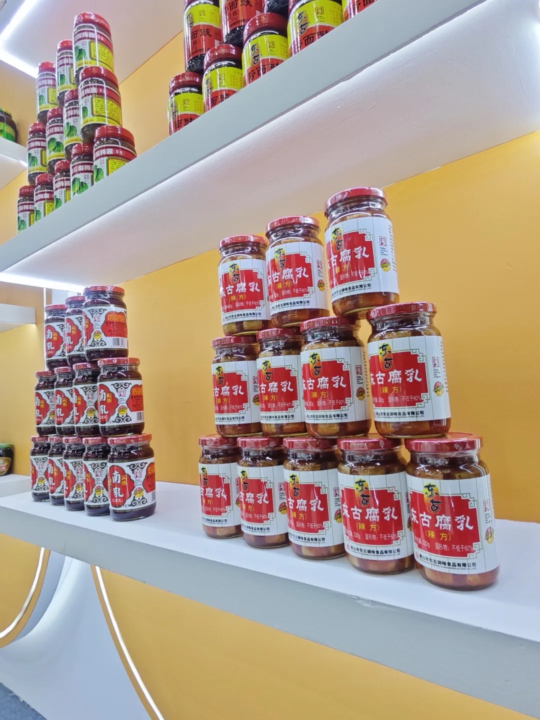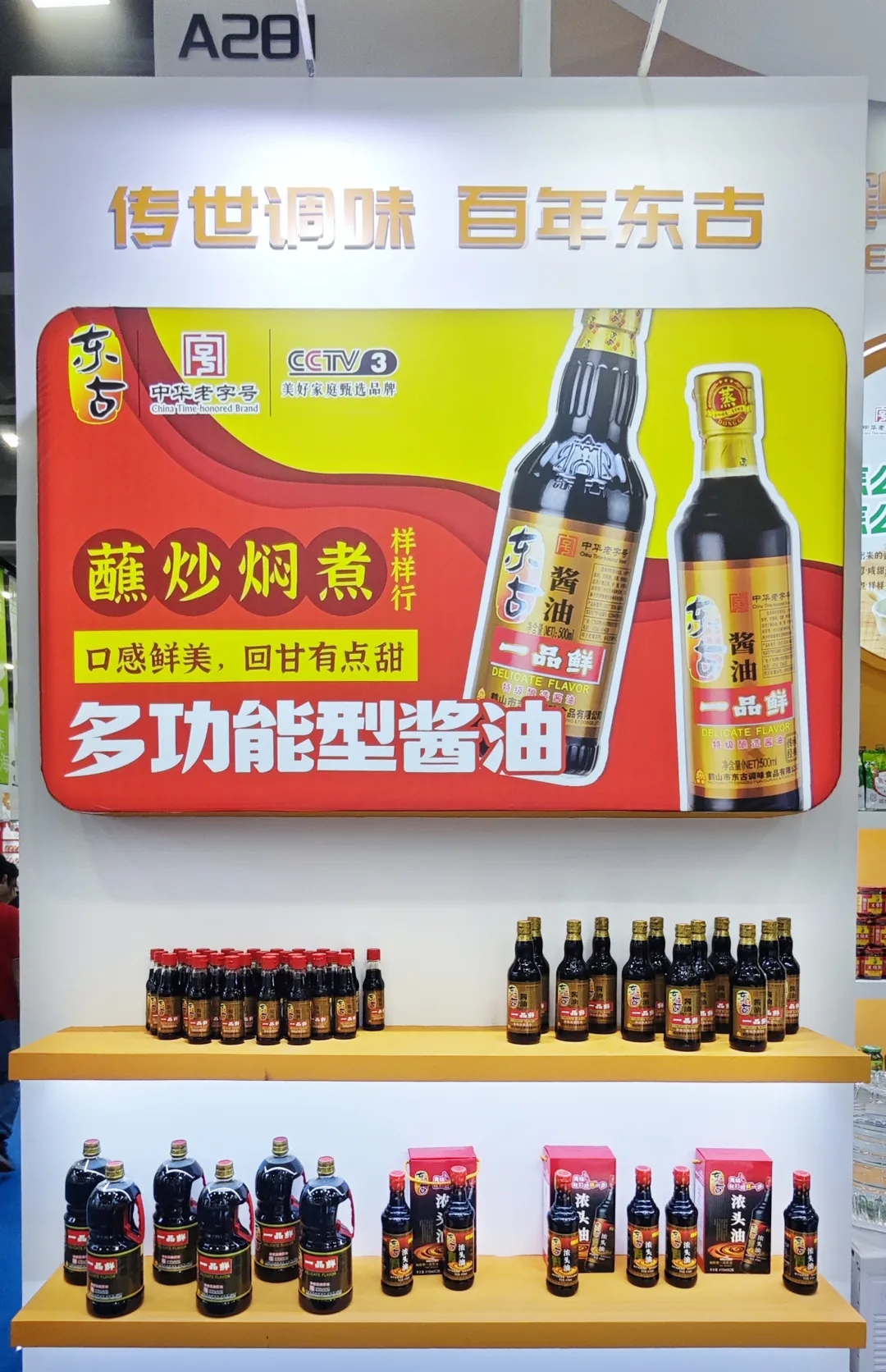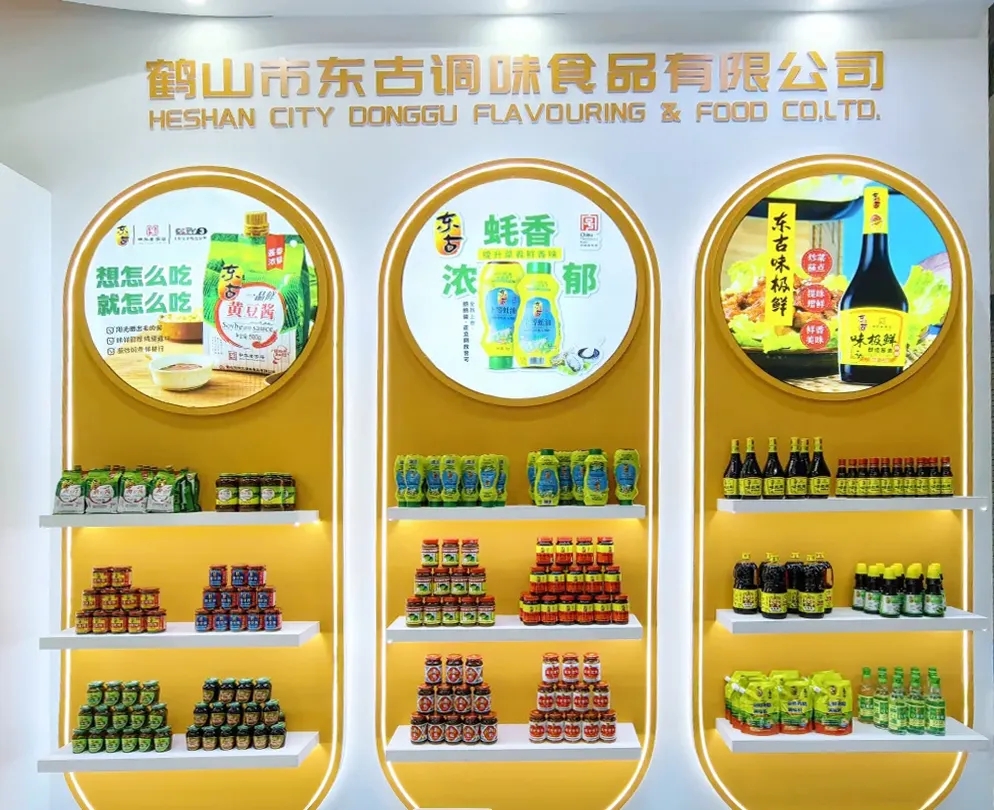 现场陈列的产品覆盖东古一品鲜、东古薄盐一品鲜、味极鲜酱油、上等蚝油、一品鲜黄豆酱等品类,从满足日常烹饪的基础款,到适配多种食品、餐饮连锁的定制款,再到契合消费趋势的创新款,全方位展现东古的产品实力。